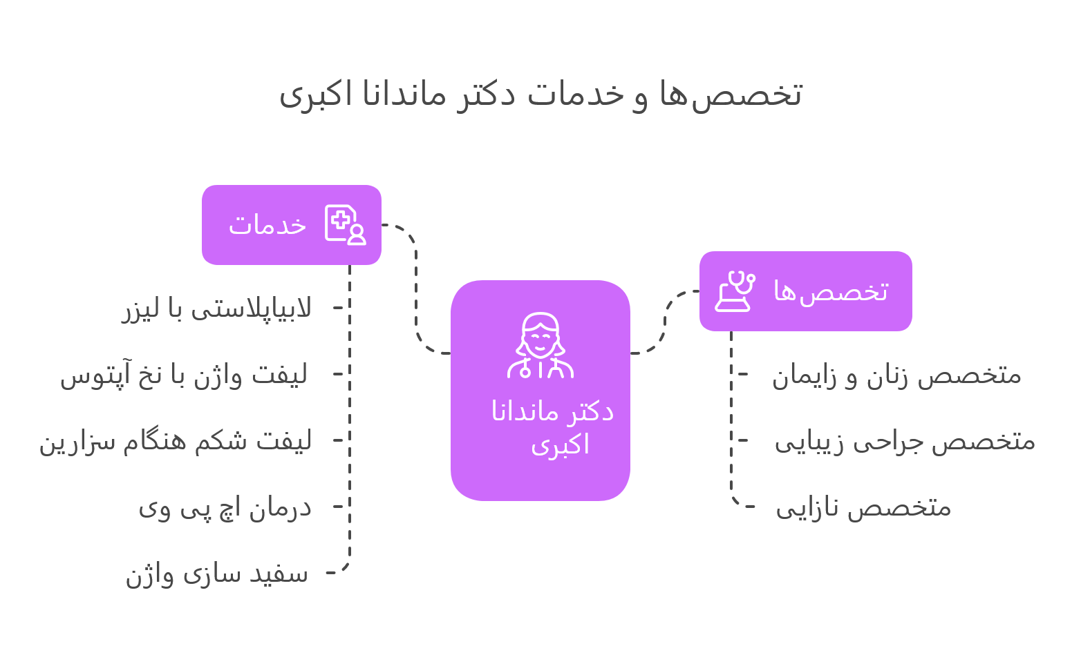 دکتر ماندانا اکبری بهترین گزینه برای زیبایی ناحیه تناسلی شما را پیشنهاد می دهد و می توانید بصورت تلفنی از ایشان مشاوره دریافت نمایید.